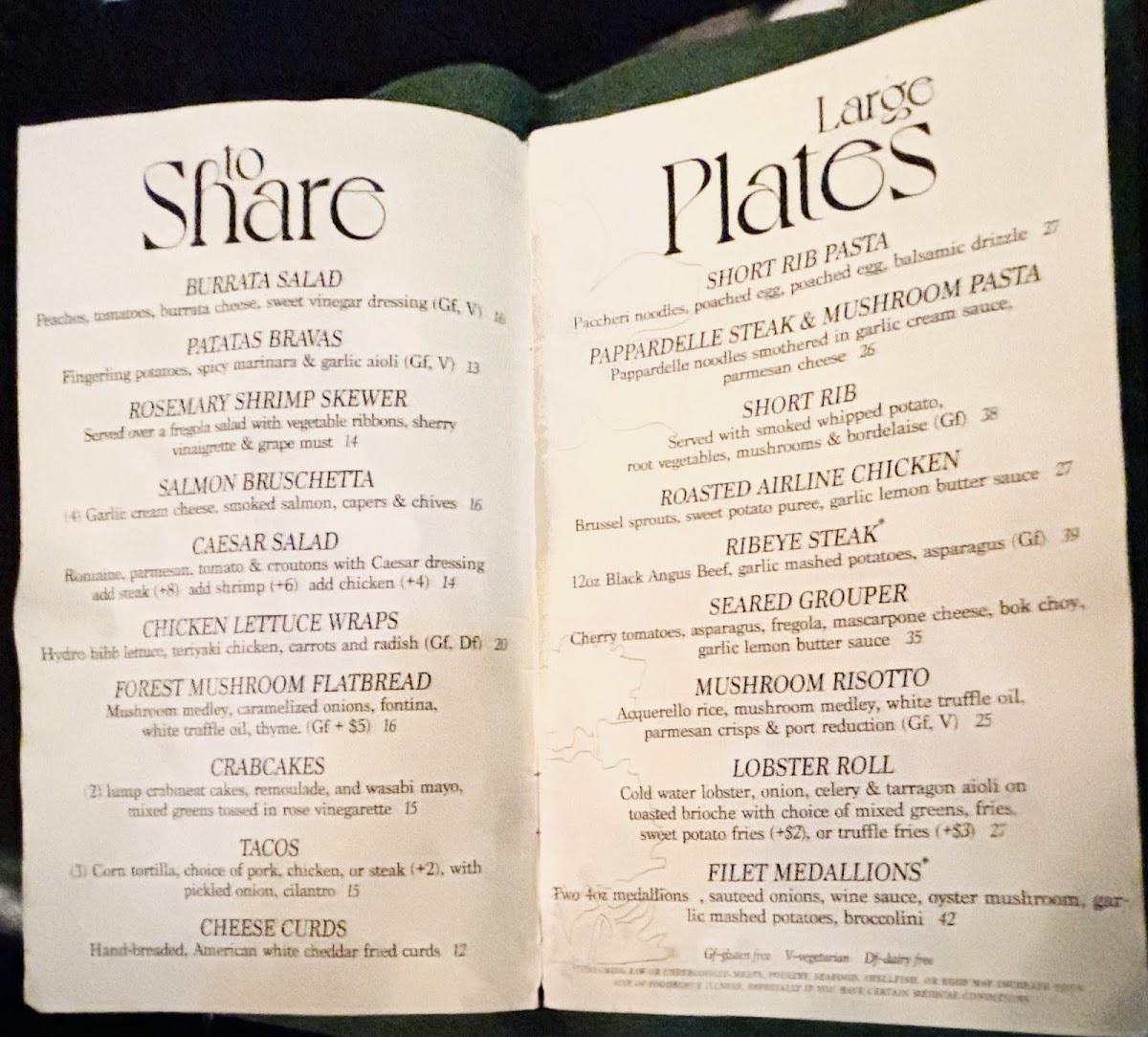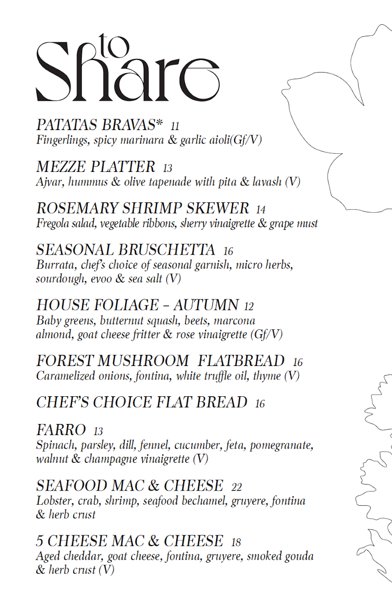 Burrata, chef's choice of seasonal garnish, micro herbs, sourdough, evoo & sea salt (v)